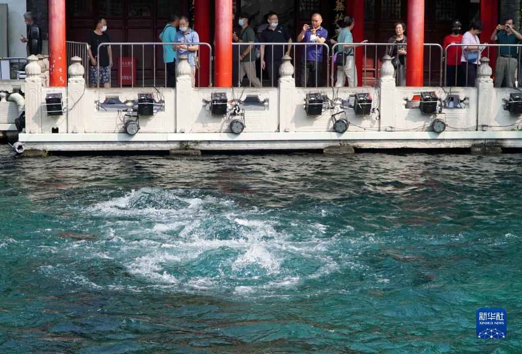 當天,被譽(yù)為“天下第一泉”的濟南趵突泉地下水位達29.86米,泉水噴涌有力,呈現出“水涌若輪”的景觀(guān)。