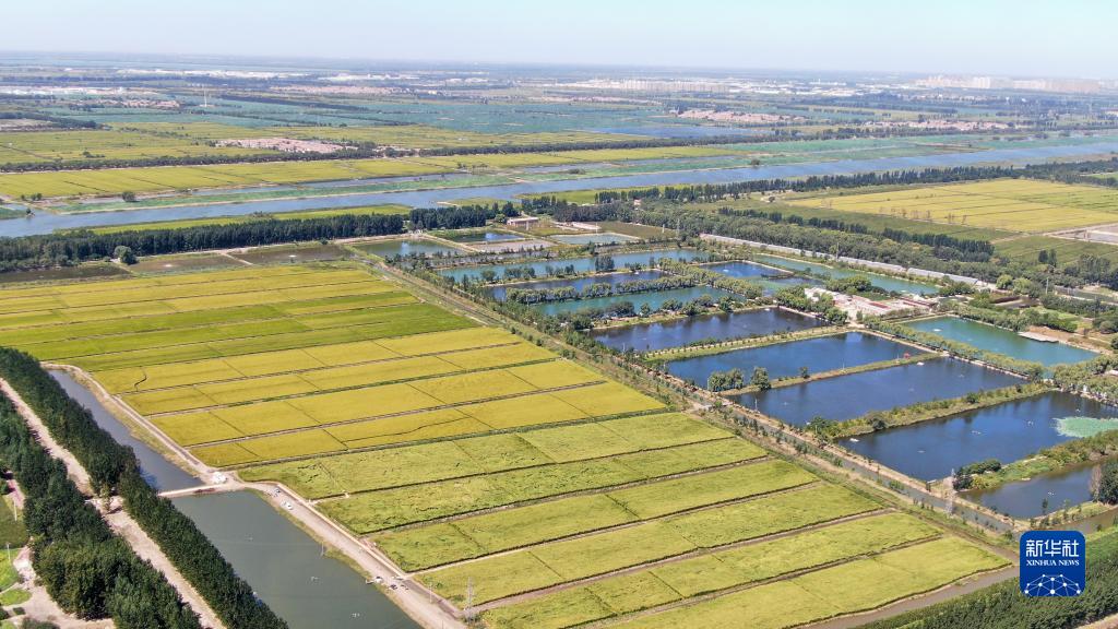 9月6日拍攝的位于天津市寧河區東棘坨鎮東白莊村的“巨型稻”試種田(無(wú)人機照片)。