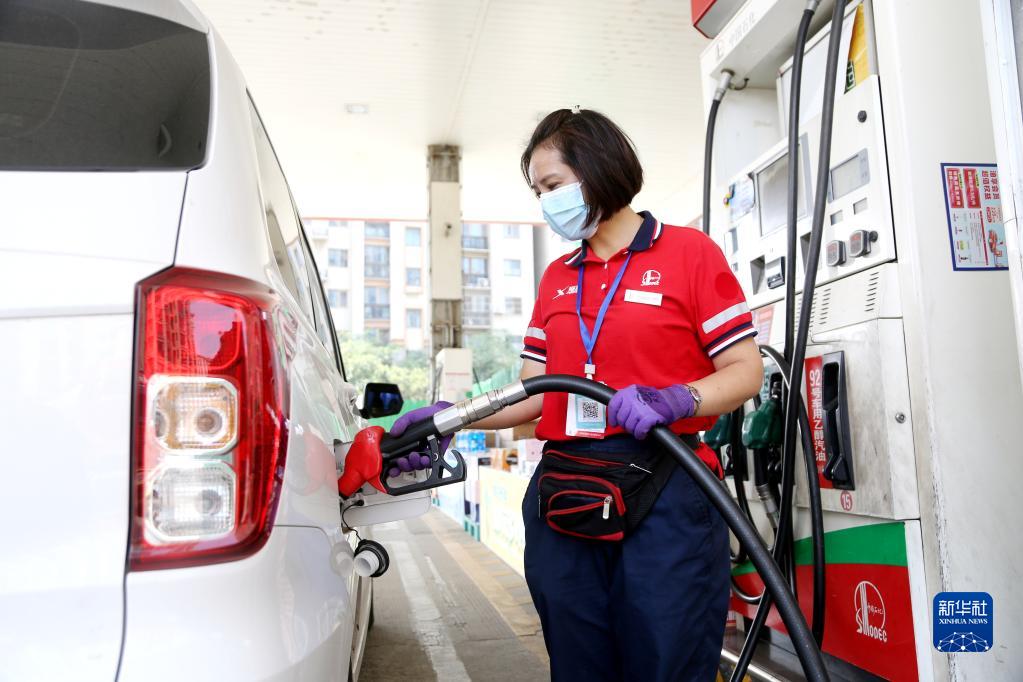 9月6日,在江蘇省連云港市一加油站,工作人員給汽車(chē)加油。