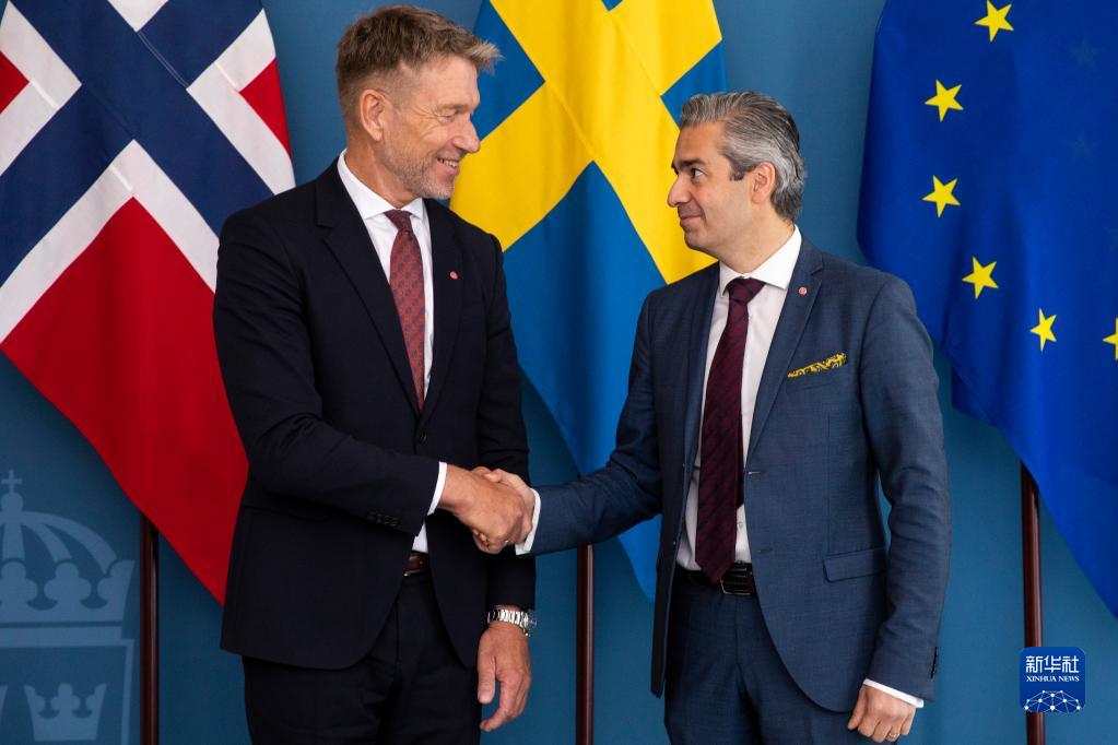9月5日,在瑞典斯德哥爾摩,瑞典能源與數字化發(fā)展大臣哈沙亞爾·法爾曼巴(右)與挪威石油和能源大臣泰耶·奧斯蘭共同出席新聞發(fā)布會(huì )。
