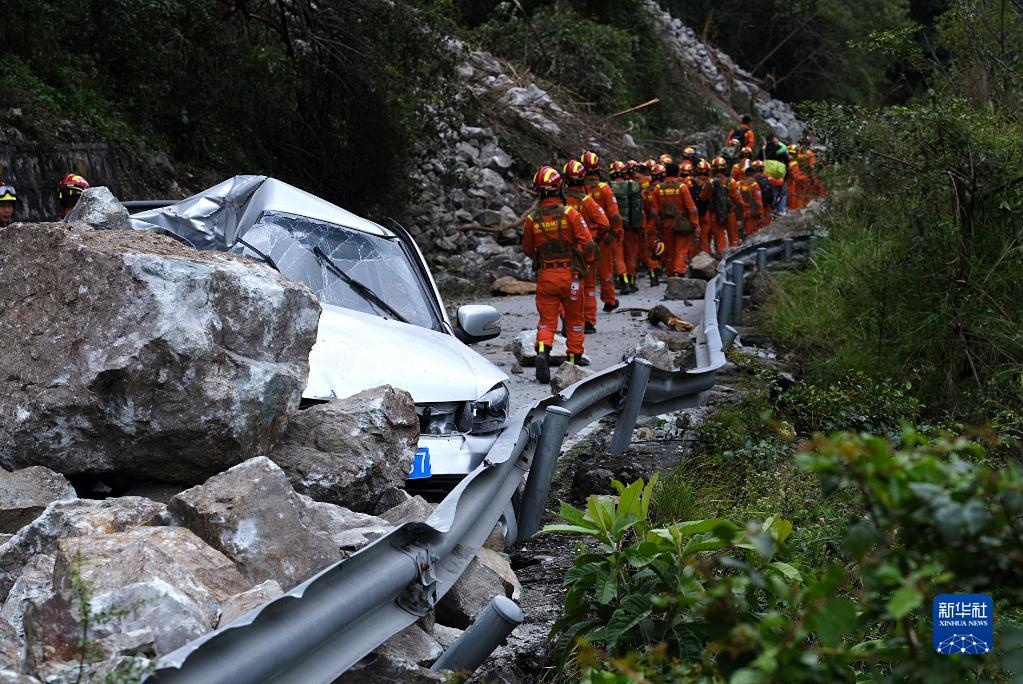 9月5日12時(shí)52分,四川甘孜藏族自治州瀘定縣發(fā)生6.8級地震,造成重大人員傷亡。地震發(fā)生后,四川森林消防總隊組織救援人員進(jìn)入災區開(kāi)展救援。新華社發(fā)(程雪力 攝)