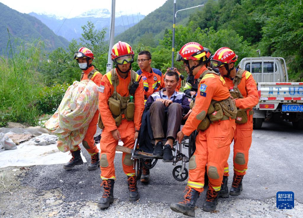 9月5日12時(shí)52分,四川甘孜藏族自治州瀘定縣發(fā)生6.8級地震,造成重大人員傷亡。地震發(fā)生后,四川森林消防總隊組織救援人員進(jìn)入災區開(kāi)展救援。新華社發(fā)(程雪力 攝)