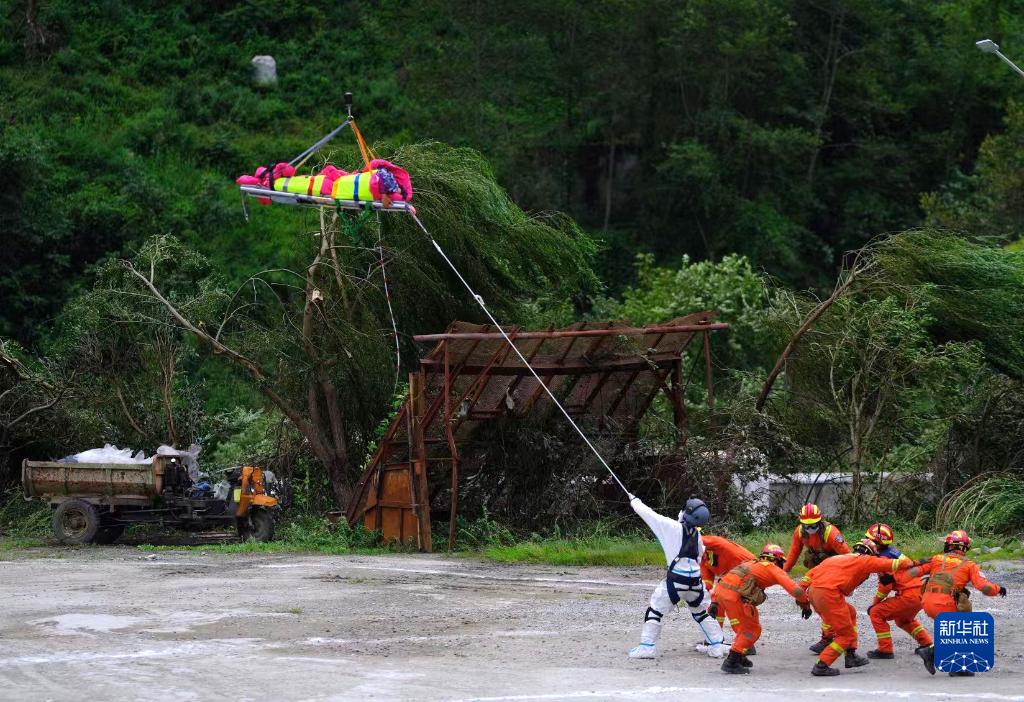 9月6日,在瀘定縣磨西鎮共和村,救援人員通過(guò)直升機轉運傷員。