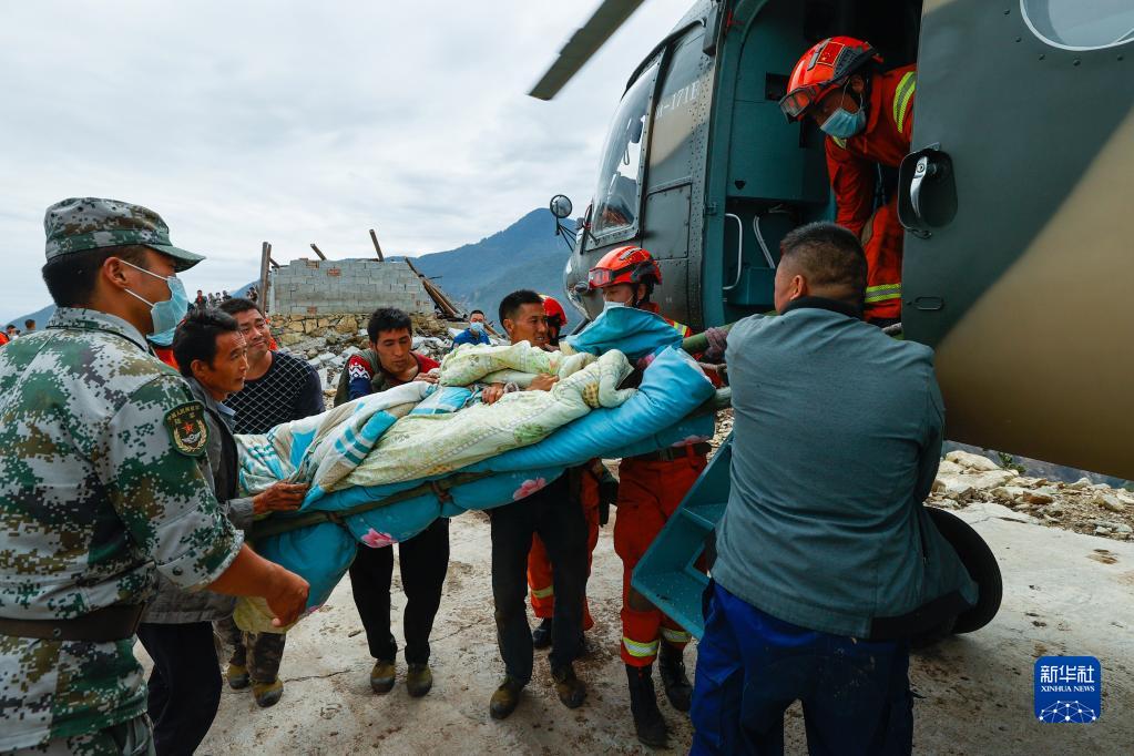 9月6日,西部戰區空軍某部緊急出動(dòng)直升機在瀘定縣轉移群眾。