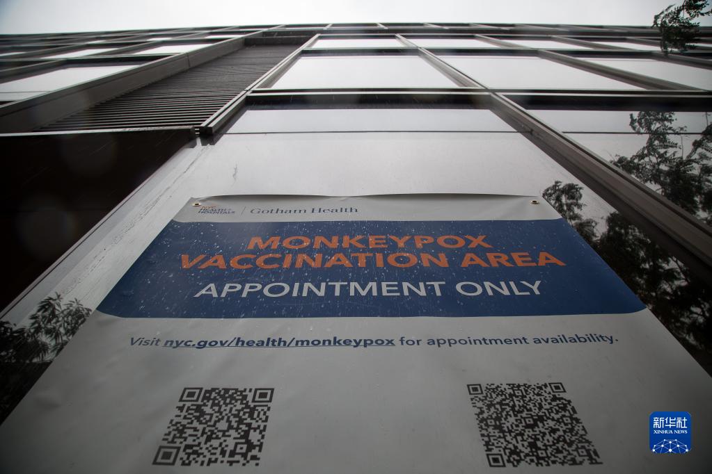 這是9月6日在美國紐約拍攝的一處猴痘疫苗接種點(diǎn)的告示。