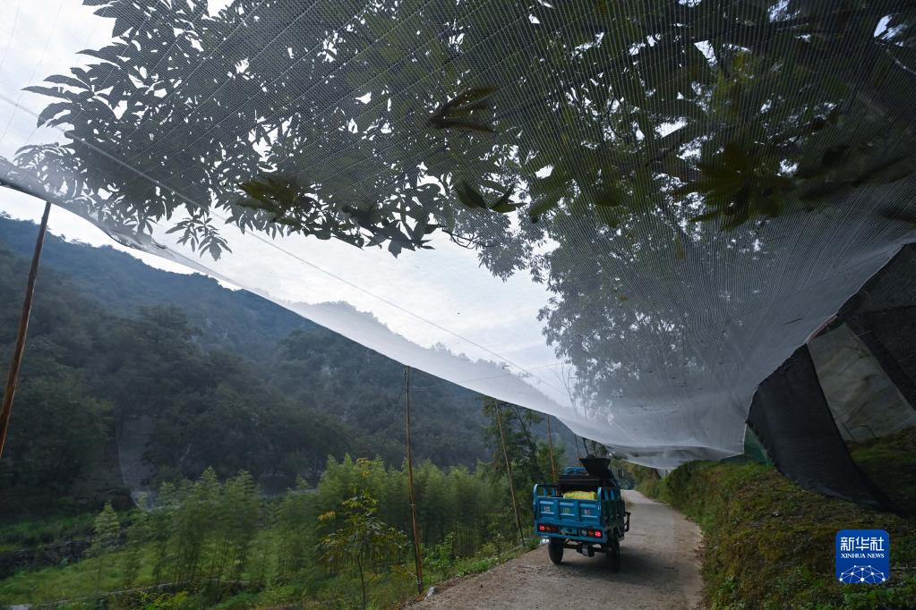 9月7日,淳安縣臨岐鎮審嶺腳村的山核桃林中鋪滿(mǎn)了采收網(wǎng),方便村民撿掉落的山核桃果。