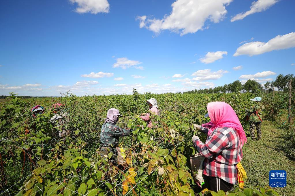9月6日,在法庫縣登仕堡子鎮西登仕堡子村樹(shù)莓種植基地,農民采摘樹(shù)莓。