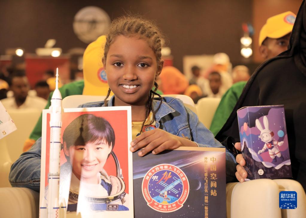 9月6日,在索馬里首都摩加迪沙的“天宮對話(huà)”活動(dòng)索馬里分會(huì )場(chǎng),當地學(xué)生展示活動(dòng)紀念品。