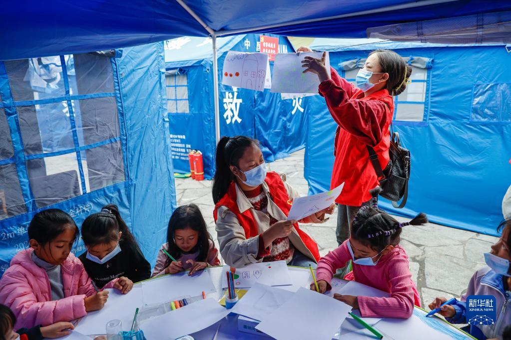 9月6日,四川省甘孜州瀘定縣磨西鎮在地震救災安置點(diǎn)里開(kāi)設了一個(gè)青青兒童樂(lè )園,通過(guò)做游戲等方式對這里的孩子進(jìn)行安撫。此后還將有更多青青兒童樂(lè )園在安置點(diǎn)里陸續設立。