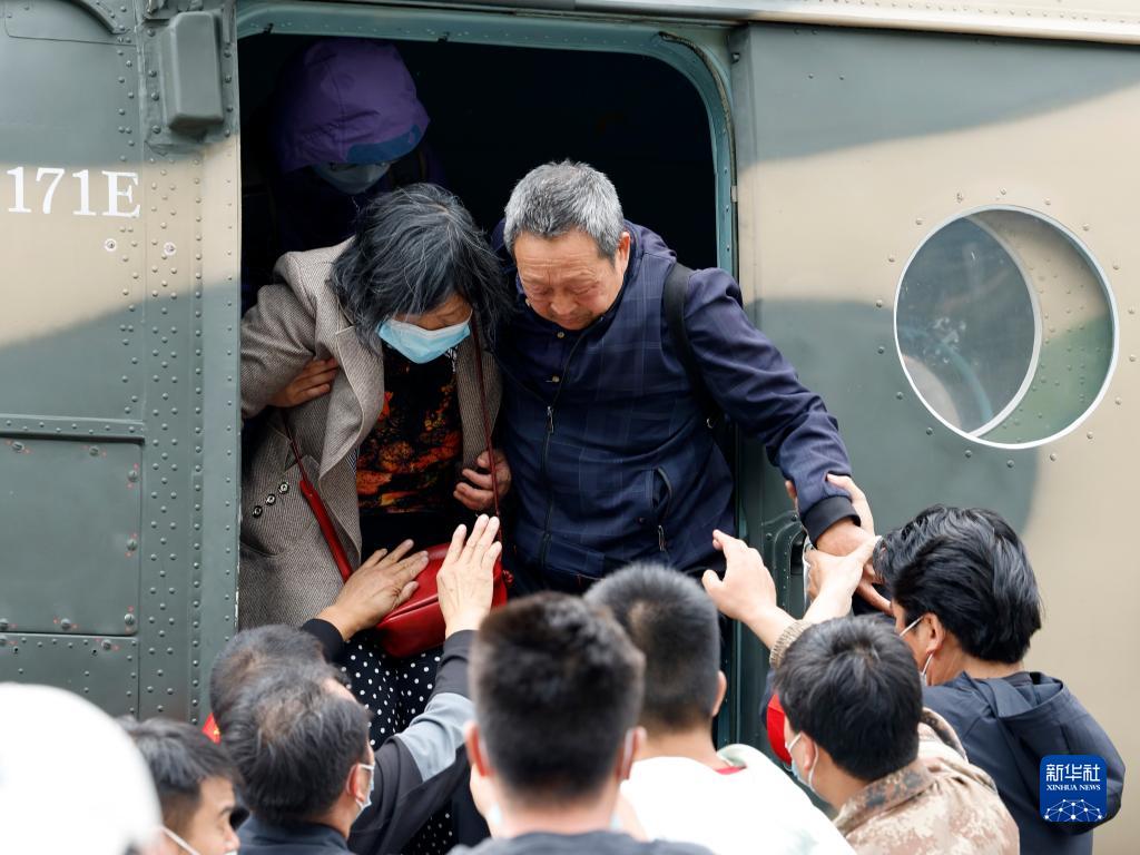 當日,從四川省海螺溝景區疏散的200余名當地群眾、游客和工作人員等搭乘直升機抵達四川省甘孜州瀘定縣磨西鎮。
