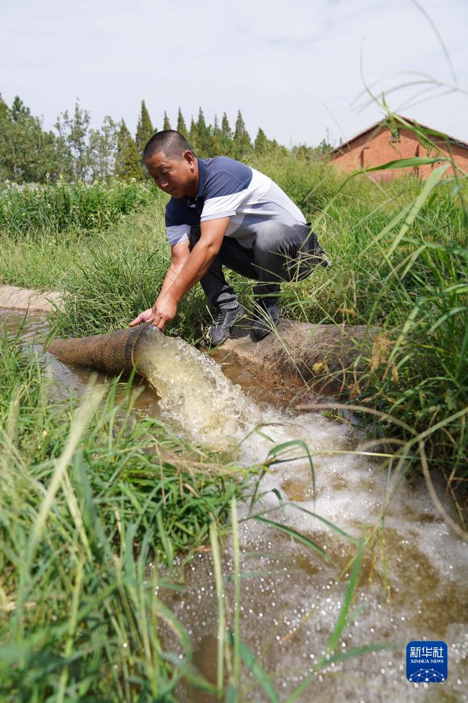 9月7日,在南昌市高新區鯉魚(yú)洲管理處五分場(chǎng)二十四大隊,村民抽水灌溉農田。