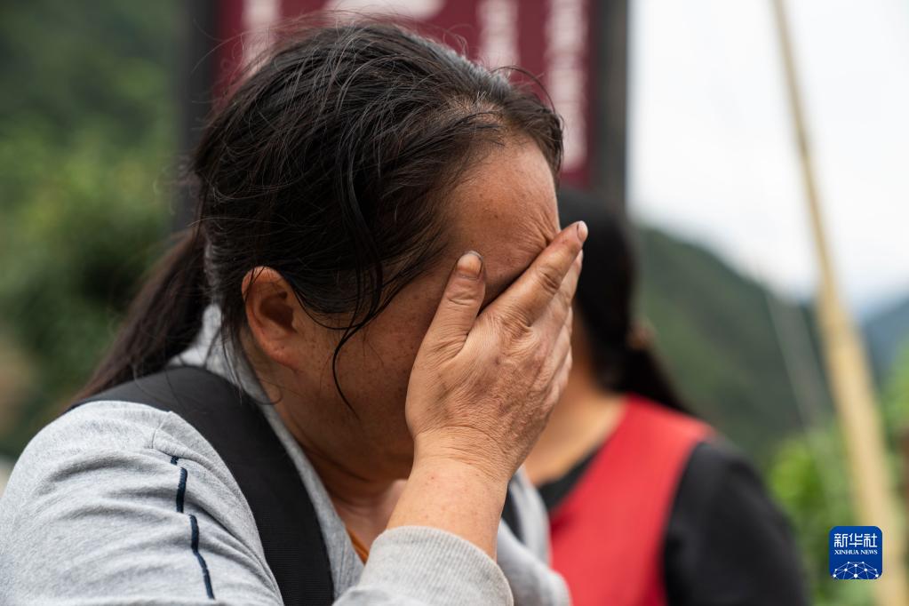 9月7日,在雅安市石棉縣王崗坪彝族藏族鄉幸福村二組,一名村民在哭泣。