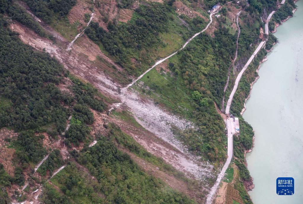 這是9月7日拍攝的雅安市石棉縣王崗坪彝族藏族鄉幸福村二組附近的照片,可看到山體多處滑坡(無(wú)人機照片)。