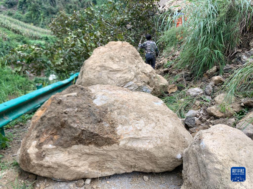 9月7日在雅安市石棉縣王崗坪彝族藏族鄉拍攝的損毀道路。