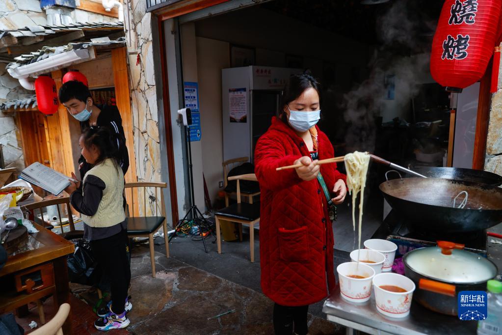 9月7日清晨,在瀘定縣磨西鎮,志愿者李長(cháng)會(huì )在為人們煮面條。