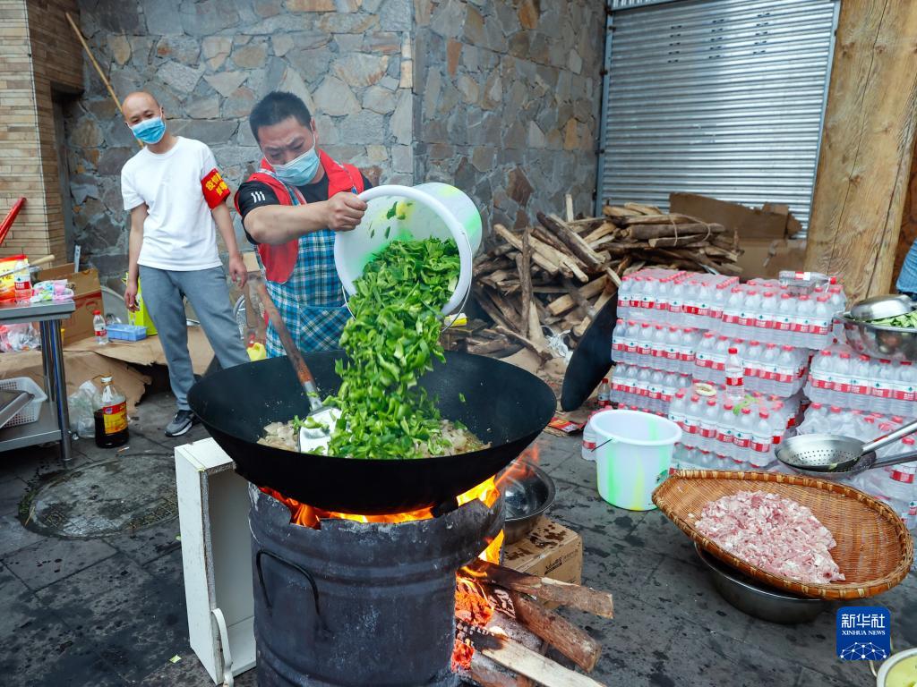 當日,一些志愿者在四川省甘孜州瀘定縣磨西鎮制作炒菜、米飯、面條等食物,大部分食材由政府提供,少部分食材為志愿者捐贈,免費提供給在這里安置的群眾。新華社記者 沈伯韓 攝