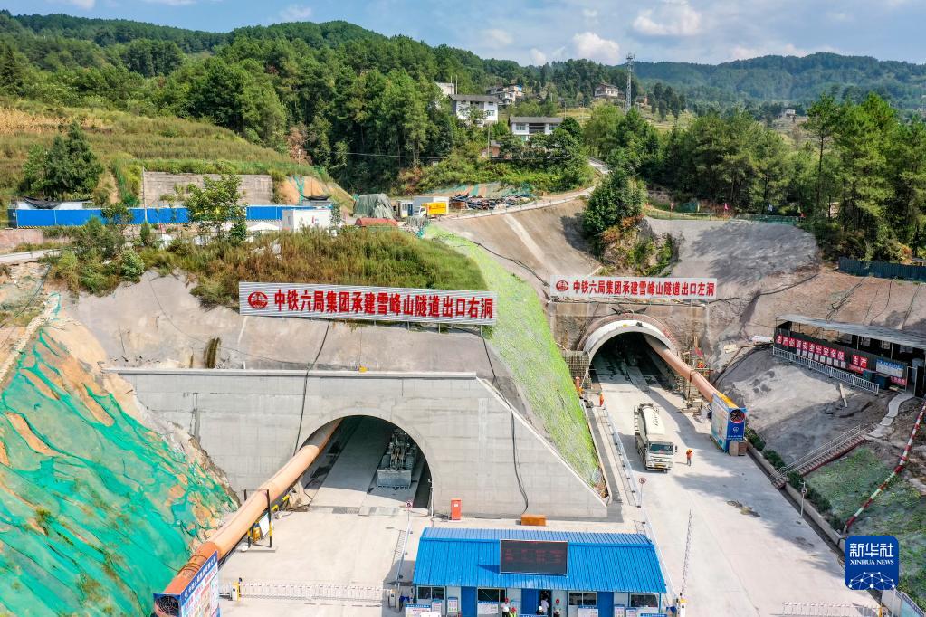 這是9月7日拍攝的中鐵六局承建的武兩高速公路二標段雪峰山隧道出口(無(wú)人機照片)。
