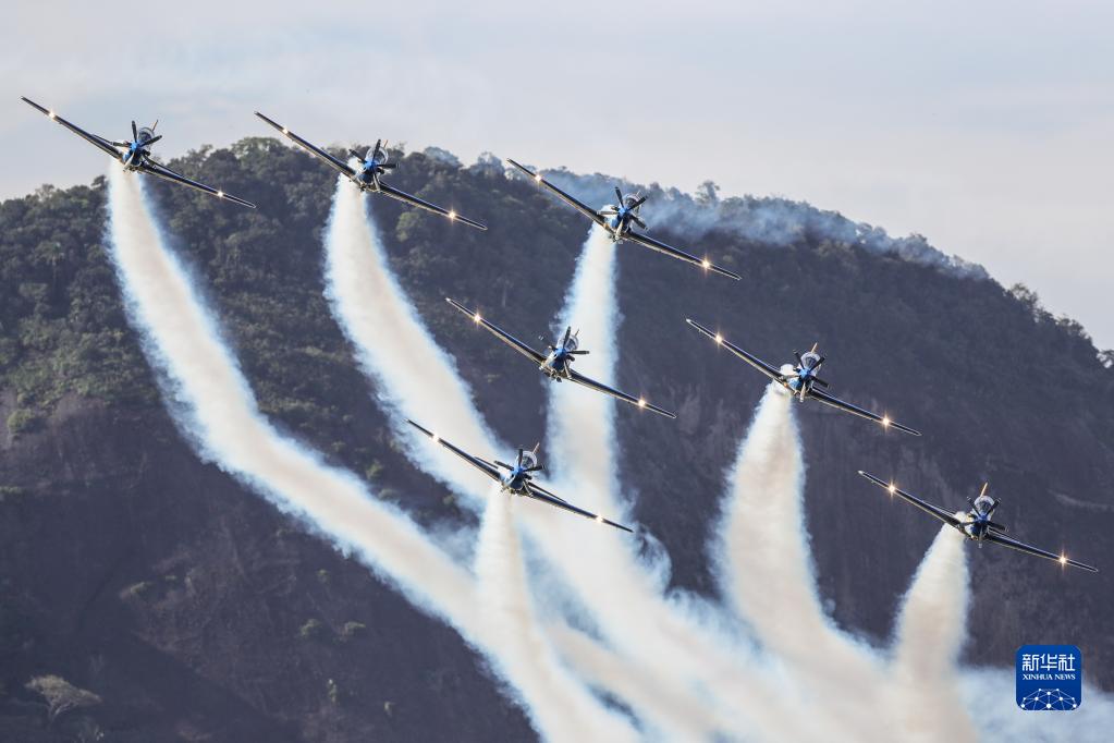 9月7日,飛機在巴西里約熱內盧科帕卡巴納海灘上空進(jìn)行飛行表演,慶祝巴西獨立200周年。