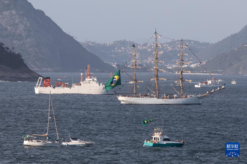 9月7日,在巴西里約熱內盧,懸掛巴西國旗的船只參加巴西獨立200周年紀念活動(dòng)。