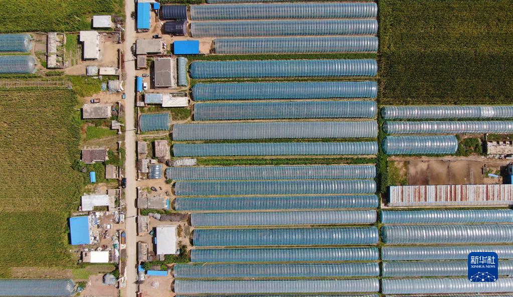 9月6日拍攝的丁家房鎮葡萄大棚(無(wú)人機照片)。