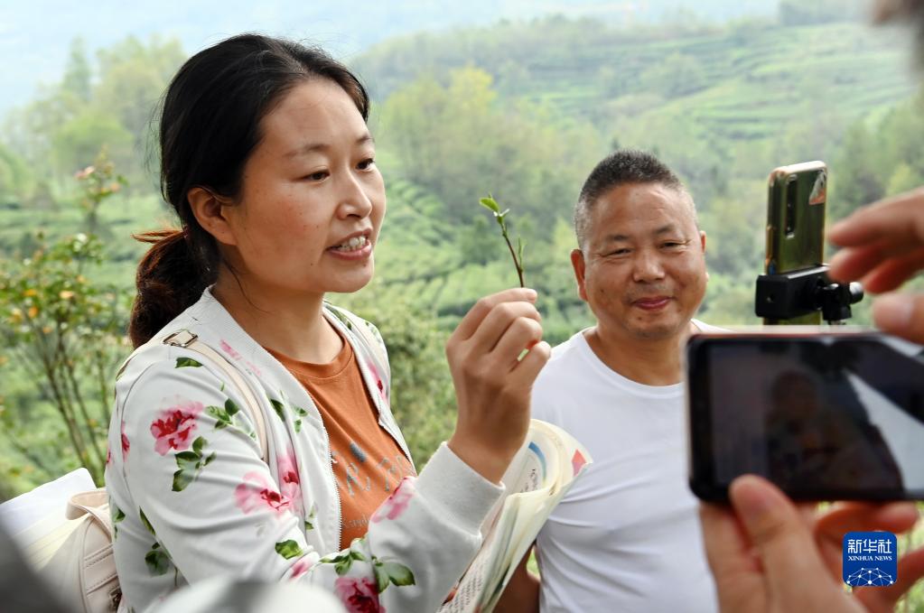 9月7日,楊小英(左)在寧強縣的千山茶園里進(jìn)行網(wǎng)絡(luò )直播。