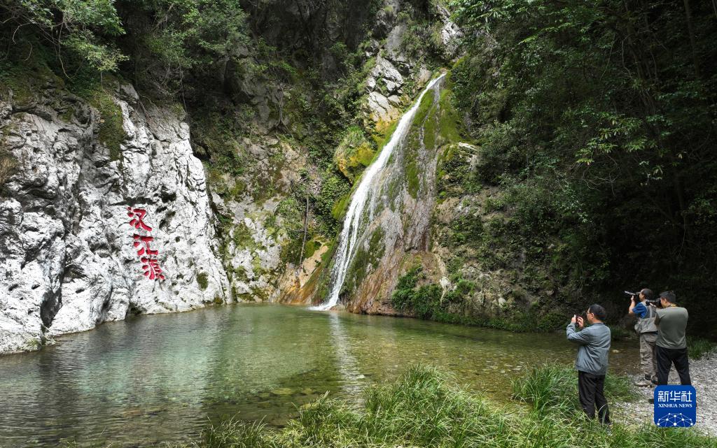 游客在位于寧強縣漢源街道漢水源村的漢江源頭拍照(9月6日攝)。此處原始森林、瀑布、碧潭、奇石、秀水交織,構成原生態(tài)自然風(fēng)光景區。