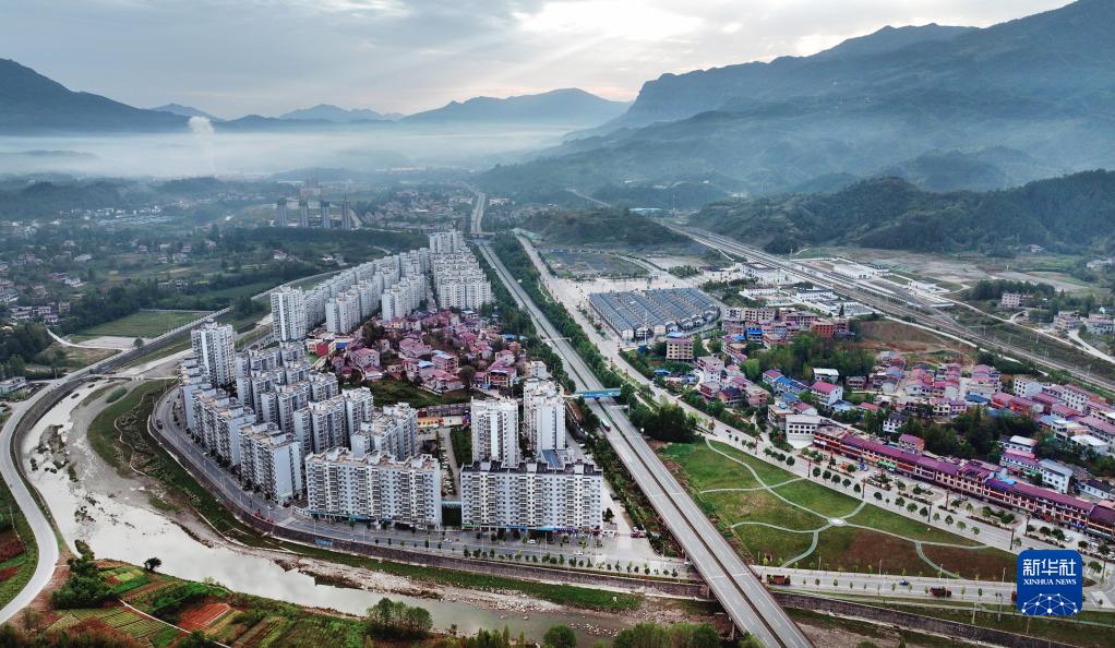 寧強縣陜南移民搬遷筒車(chē)河安置點(diǎn)(中間道路左側,9月6日攝,無(wú)人機照片)。這里安置了全縣范圍內因地質(zhì)災害、洪澇災害、扶貧、生態(tài)和工程五種類(lèi)型的移民搬遷戶(hù),入住近2萬(wàn)人。