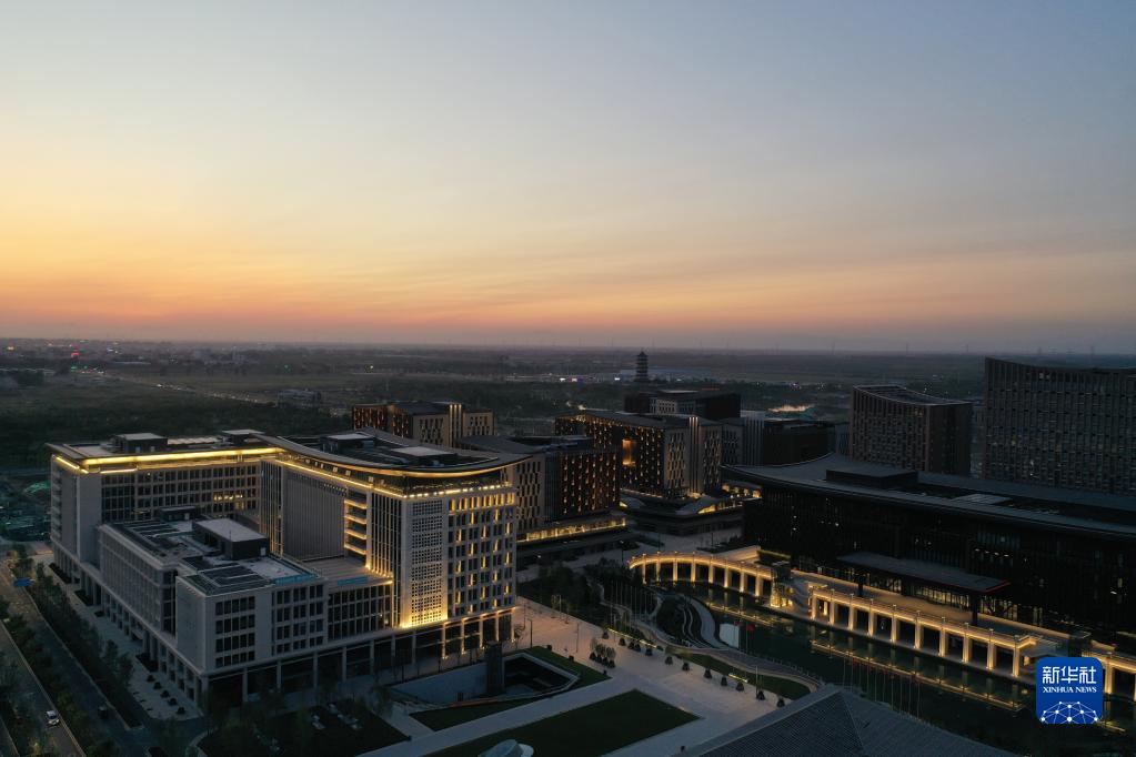 這是雄安新區商務(wù)服務(wù)中心夜景(9月7日攝,無(wú)人機照片)。