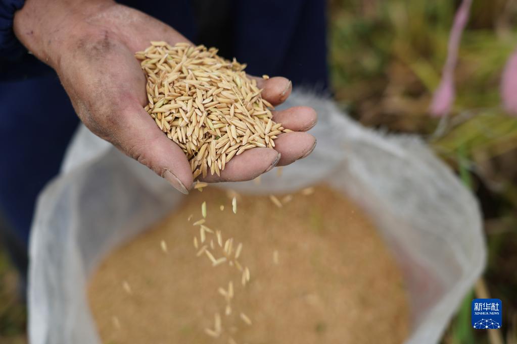 嵐皋縣南宮山鎮桂花村村民收獲的稻谷(9月7日攝)。