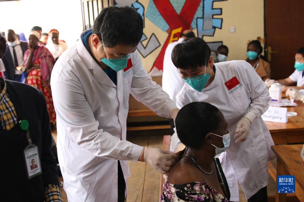 9月7日,在盧旺達首都基加利市加漢佳衛生院,中國第22批援盧旺達醫療隊成員為當地患者診療。