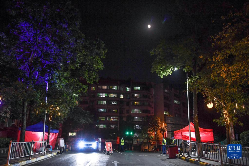 9月7日晚,在貴陽(yáng)市云巖區大營(yíng)路街道中天花園社區,物管人員和社區工作人員在疫情防控點(diǎn)值守。