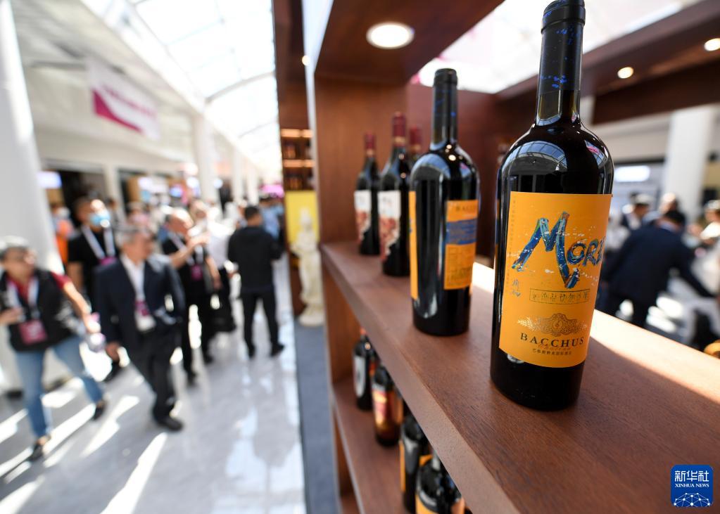 這是賀蘭山葡萄酒展銷(xiāo)會(huì )現場(chǎng)展示的寧夏葡萄酒(9月7日攝)。