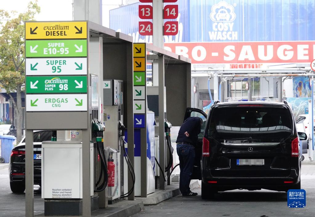 9月8日,一名男子在德國柏林的加油站給汽車(chē)加油。