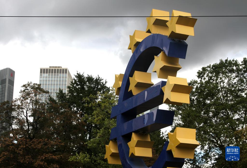 這是9月8日在德國法蘭克福拍攝的歐元雕塑。