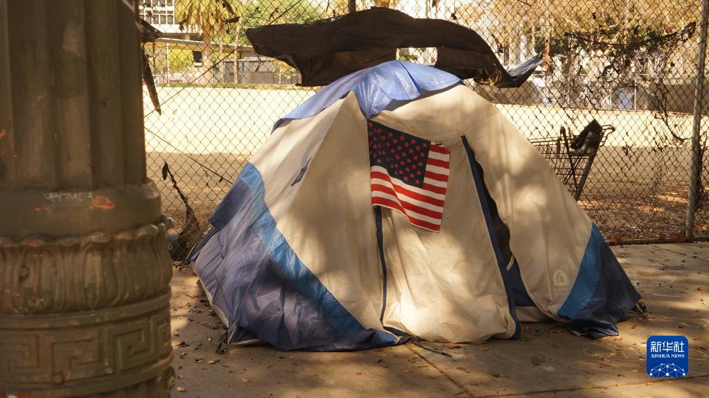 這是9月8日在美國加利福尼亞州洛杉磯市區拍攝的無(wú)家可歸者的帳篷。