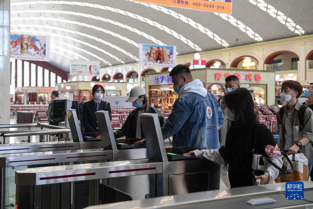 9月9日,在哈爾濱西站,旅客通過(guò)閘機進(jìn)站乘車(chē)。