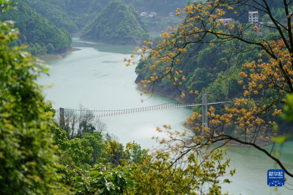 安康市漢濱區雙龍鎮境內的漢江景色(2021年4月12日攝)。