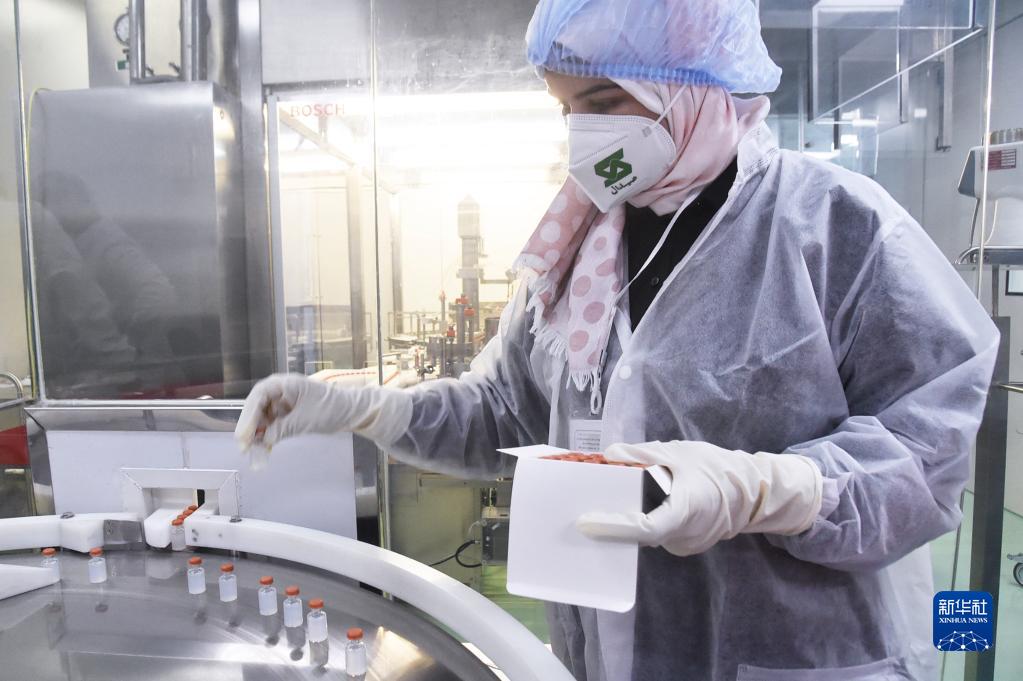 2021年9月29日,在阿爾及利亞?wèn)|部城市君士坦丁,一名賽達爾醫藥集團的工作人員查看生產(chǎn)的新冠疫苗。阿爾及利亞賽達爾醫藥集團和中國科興公司合作生產(chǎn)新冠疫苗的項目當日正式投產(chǎn)。