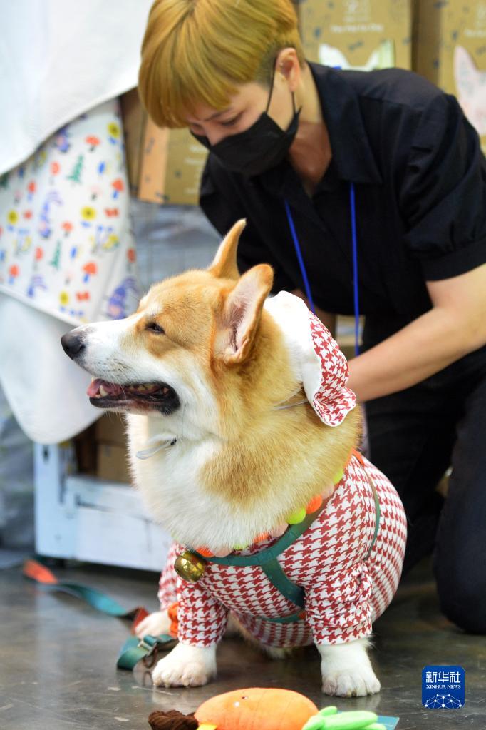 9月8日,工作人員在泰國曼谷舉行的寵物博覽會(huì )上展示一只寵物狗。