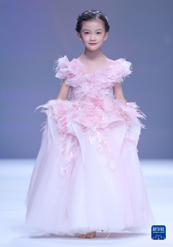9月9日,小模特在北京中國國際時(shí)裝周(2023春夏系列)舉行的“AMORCODE”童裝發(fā)布會(huì )上展示童裝。