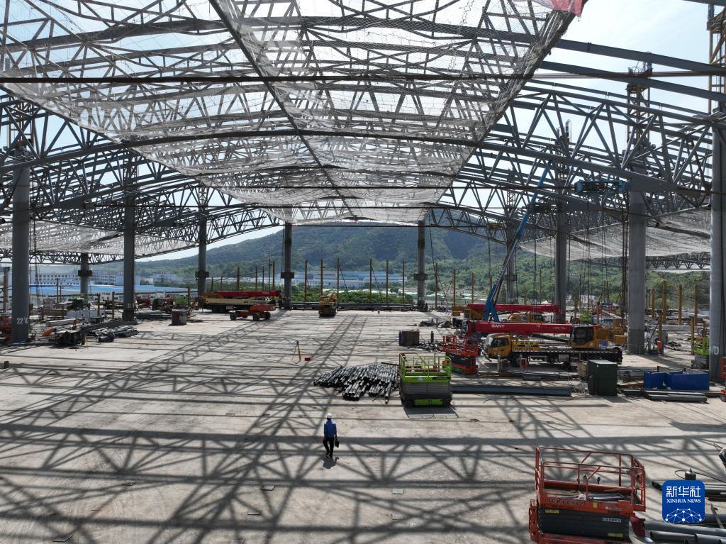 9月9日拍攝的建設中的江陰站站房(無(wú)人機照片)。