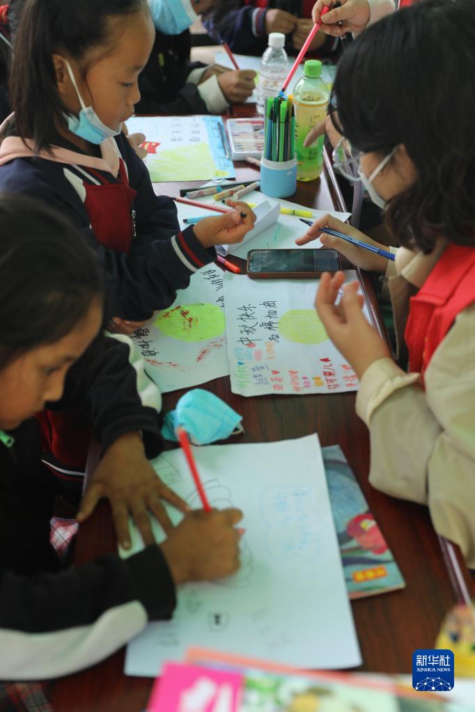 9月9日,在四川省石棉縣王崗坪鄉安置點(diǎn)內,志愿者在教小朋友畫(huà)畫(huà)。