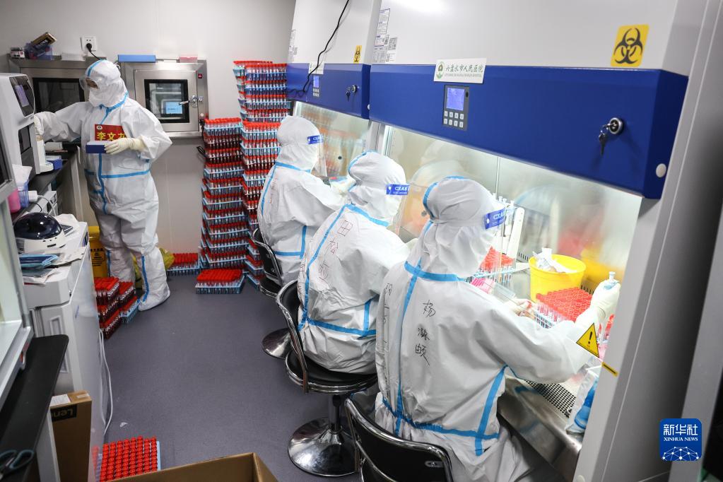 貴陽(yáng)市筑城廣場(chǎng)移動(dòng)方艙核酸檢測基地是承擔貴陽(yáng)市大規模核酸檢測任務(wù)的“主陣地”之一。為盡快完成核酸檢測工作,實(shí)驗室檢測團隊采取24小時(shí)輪班倒制度,晝夜兼程。新華社記者 歐東衢 攝