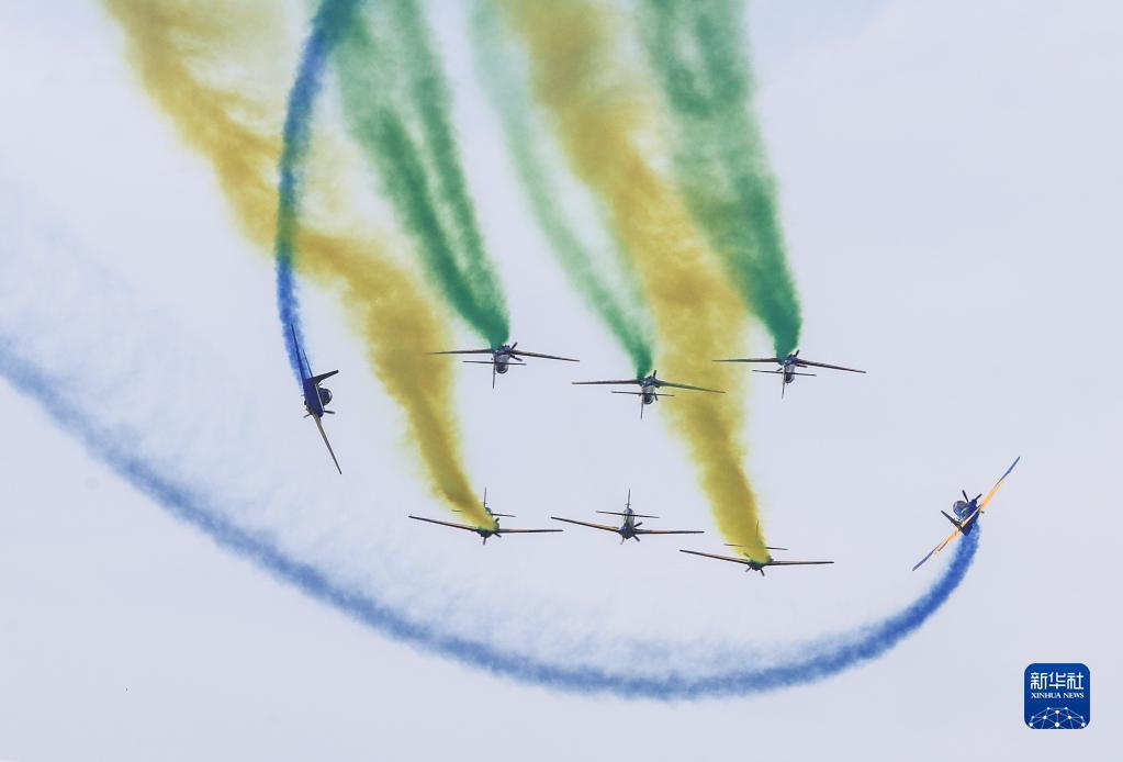 9月7日,飛機在巴西里約熱內盧科帕卡巴納海灘上空進(jìn)行飛行表演,慶祝巴西獨立200周年。
