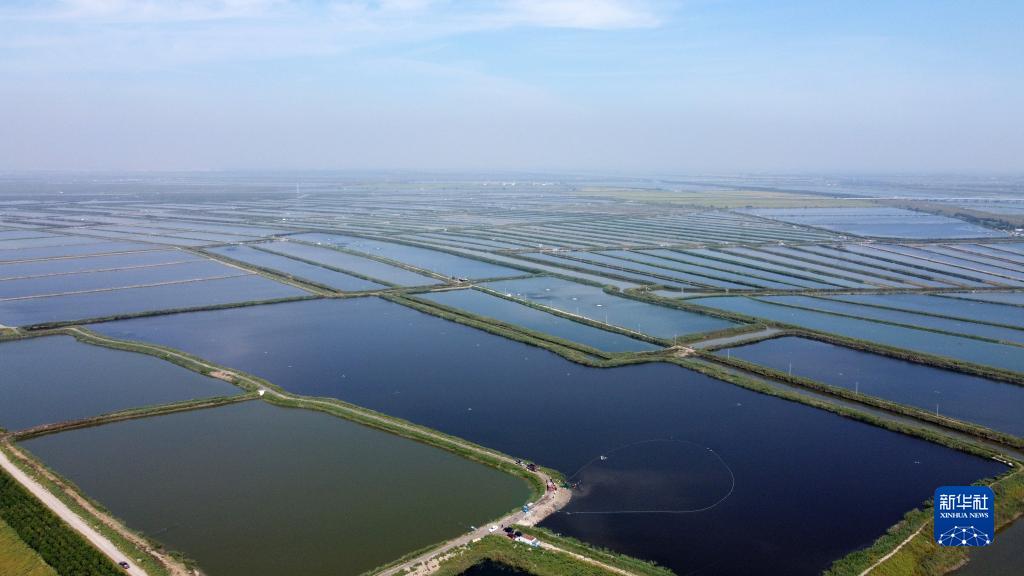 這是9月9日拍攝的位于天津市濱海新區北塘街的蝦塘(無(wú)人機照片)。