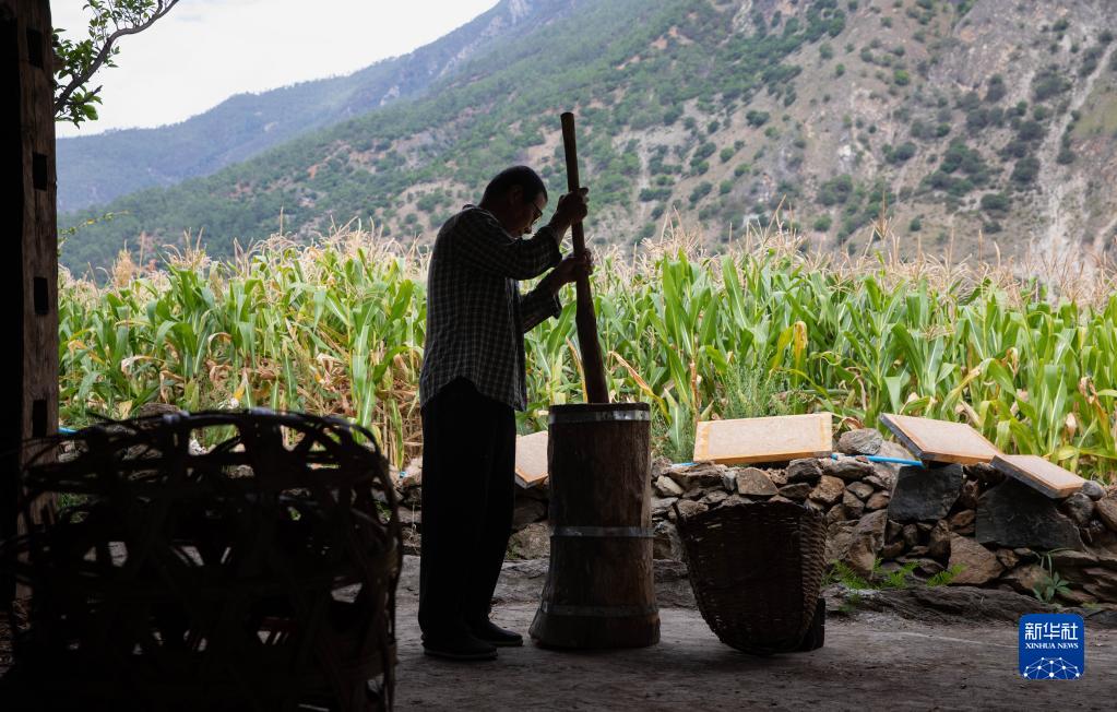 生活在四川省木里藏族自治縣納西族古村寨俄亞大村的英扎次里,是東巴文化省級非遺傳承人。通過(guò)不斷研究摸索,他逐漸掌握納西東巴古法造紙技藝。