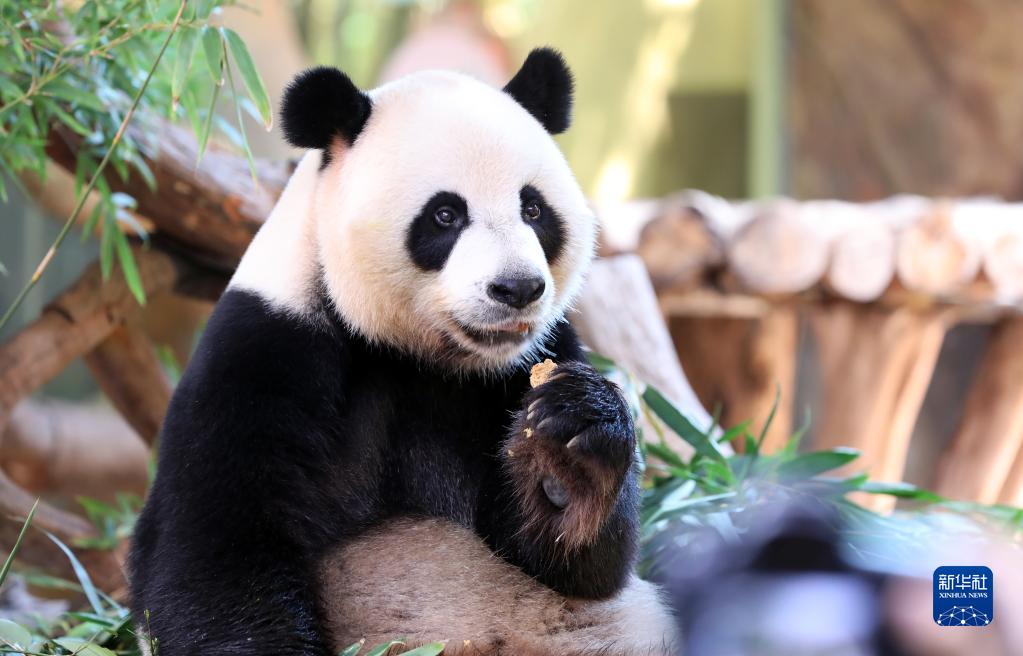 9月9日,在廣州長(cháng)隆野生動(dòng)物世界,大熊貓“帥帥”品嘗特制“月餅”。