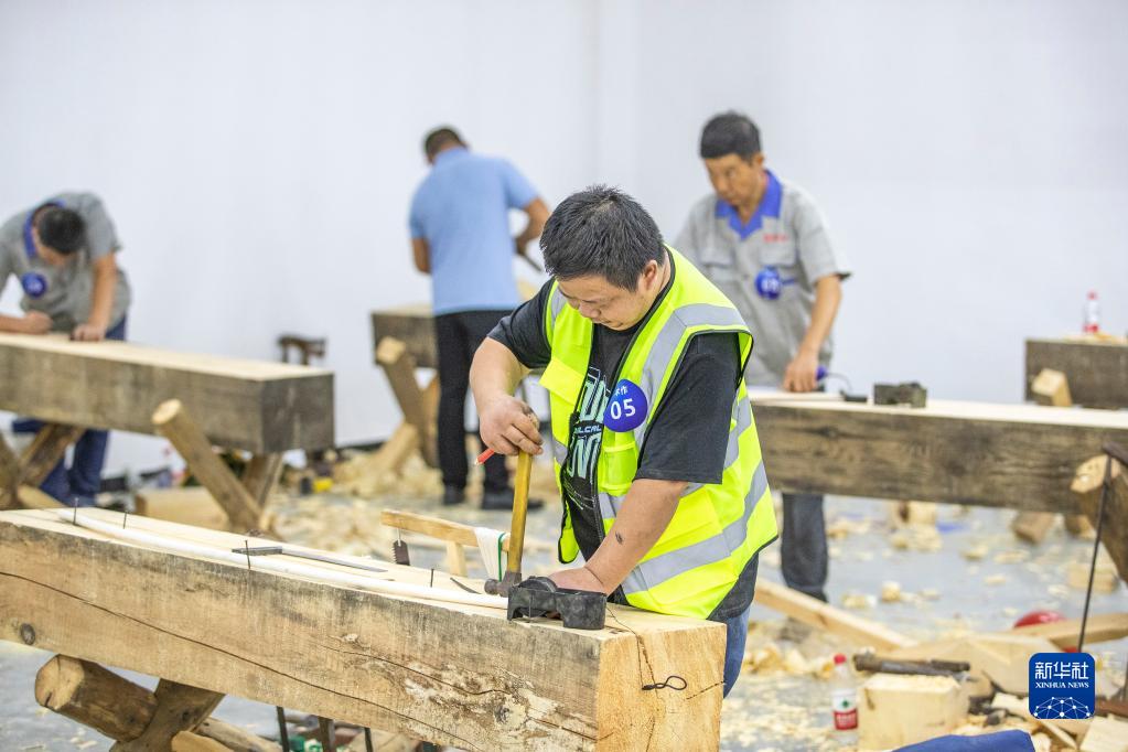 9月9日,參賽人員在進(jìn)行木作文物修復技能比賽。