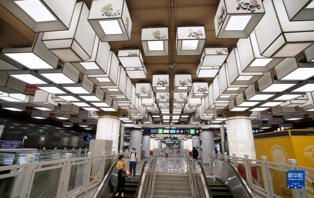 融入中國傳統宮燈等元素的北京地鐵19號線(xiàn)站臺(9月9日攝)。