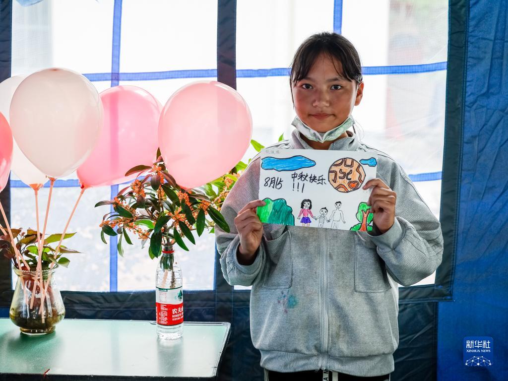 9月10日是中秋節,也是教師節,這些志愿者自費買(mǎi)來(lái)氣球、彩色貼紙、文具等,將三個(gè)帳篷裝點(diǎn)成“帳篷課堂”,帶領(lǐng)孩子們畫(huà)畫(huà)、做游戲、制作創(chuàng )意“月餅”等,一同度過(guò)特別的暖心節日。